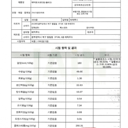 프로틴빵 성분검사*시험성적서